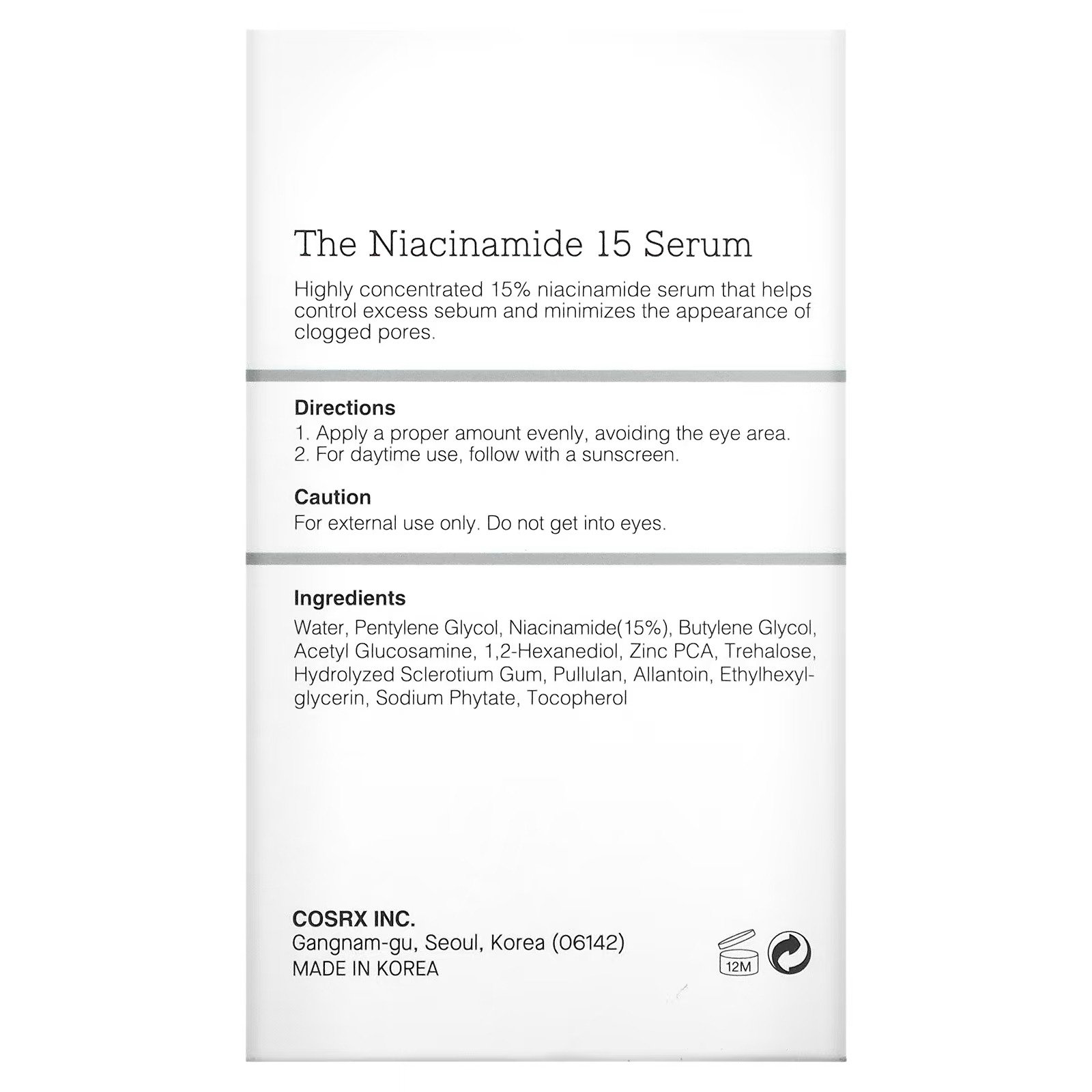 - نياسيناميد 15%: لتنظيم الدهون وتحسين مظهر البشرة