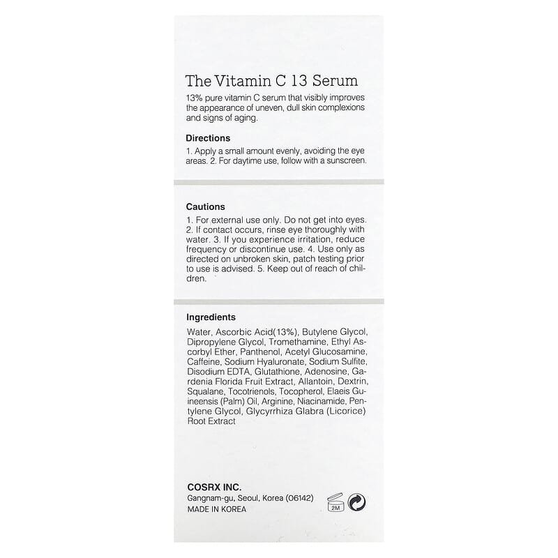 يأتي هذا السيروم من COSRX، العلامة الكورية المعروفة بتركيباتها الفعالة، ويُستخدم ضمن روتين العناية الكورية للحصول على بشرة أكثر نضارة وتوحيدًا في اللون.