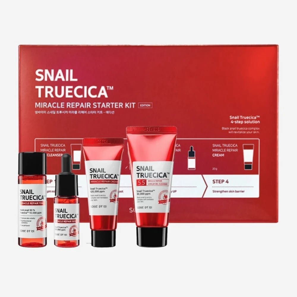 مجموعة Snail Truecica من SOME BY MI لإصلاح وتجديد البشرة هي الحل المثالي لاستعادة نضارة بشرتك وتقليل آثار الحبوب والتصبغات. تقدم لكِ SOME BY MI Snail Truecica Miracle Repair Starter Kit روتين متكامل يعمل على تجديد البشرة وإصلاحها بعمق.